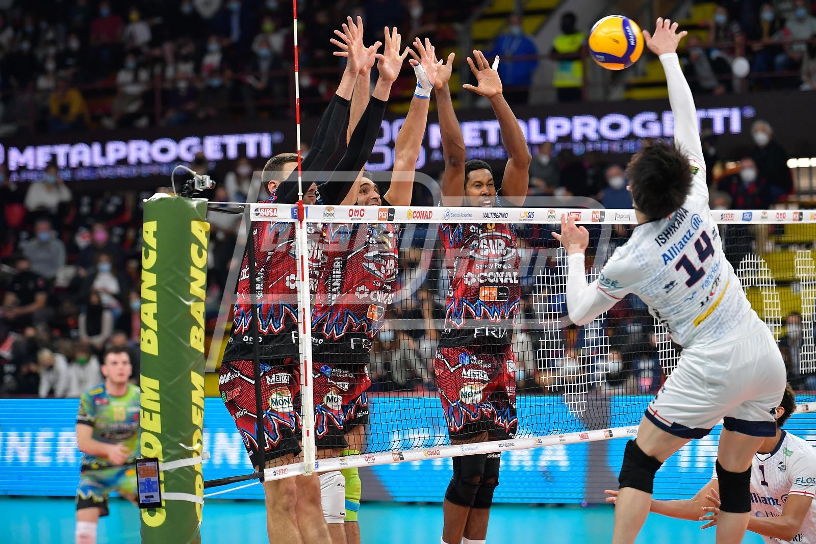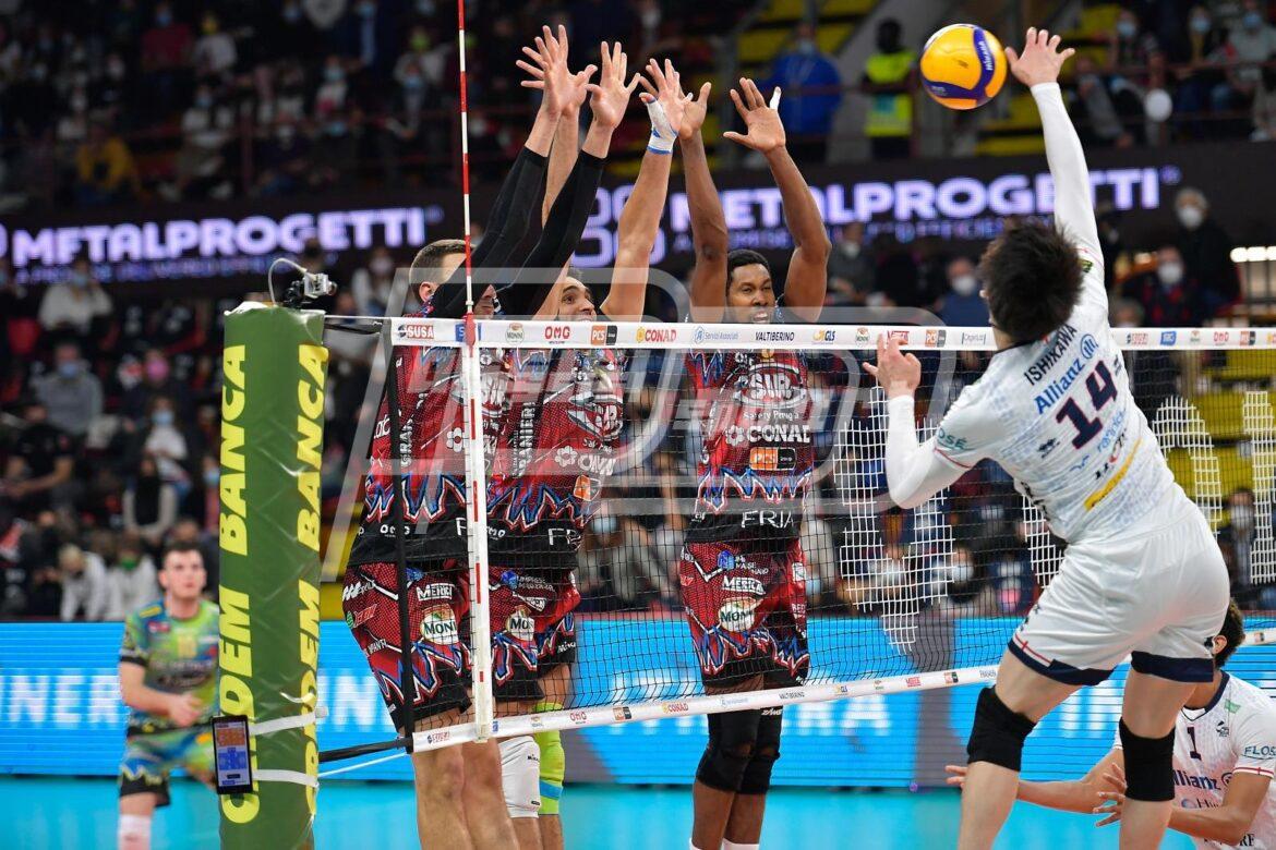 Porro, classe 2001 alla sua prima stagione da titolare in Superlega, sta subito dimostrando qualità tecniche e temperamentali importanti e sta facendo girare a meraviglia i suoi tanti attaccanti. Il principale gioca in diagonale ed è l’opposto francese campione olimpico Patry, 208 cm e traiettorie d’attacco difficili da contrastare. Al centro l’Allianz presenta l’esperienza di capitan Piano (come sempre da evitare quando alza i suoi lunghi tentacoli a muro) ed il braccio armato del francese, pure lui campione olimpico, Chinenyeze, uno dei migliori primi tempi del campionato. Tantissima qualità anche in posto quattro dove giocano il giapponese Ishikawa e l’americano Jaeschke, entrambi atleti molto tecnici in ricezione ed in attacco ed entrambi ottimi battitori al salto.