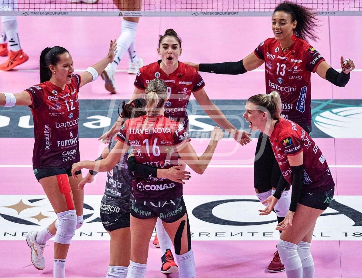 BARTOCCINI-FORTINFISSI PERUGIA: Havelkova 14, Melandri 10, Diouf 22, Guerra 13, Bauer 2, Bongaerts 3, Sirressi (L), Diop 5, Nwakalor 4, Melli 3, Guiducci, Provaroni. Non entrate: Rumori (L).