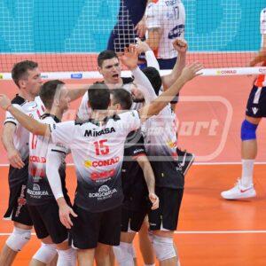 SIR SAFETY CONAD PERUGIA: De Cecco, Hoogendoorn 16, Podrascanin 10, Ricci 12, Lanza 9, Plotnytskyi 16, Colaci, (libero), Taht 8, Zhukouski 1, Bucciarelli. N.e.: Atanasijevic, Piccinelli (libero). All. Fontana.