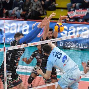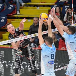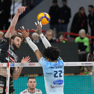 IL MATCH Mengozzi-Flavio coppia di centrali, Piccinelli libero. Queste le scelte di Anastasi. Avvio equilibrato (5-5). Primo break della partita con Plotnytskyi in attacco e poi Flavio a muro (8-5). Doppio ace di Bayram e subito parità (8-8). Si continua punto a punto con Leon che inchioda la pipe del 15-14. Muro di Mengozzi (18-16). Muro vincente anche per Flavio, Perugia a +3 (22-19). Ace di Bayram (23-22). Fuori il martello turco, set point Perugia (24-22). Al secondo tentativo Flavio manda avanti i suoi (25-23).