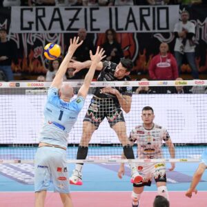 Match piacevole per il pubblico presente con Andrea Anastasi che ruota sia prima che durante la partita gran parte della sua rosa e con i Block Devils che sono bravi a vincere in volata il primo set e, dopo un secondo sempre condotto con ampio margine, a recuperare nel terzo parziale un gap di 6 lunghezze (8-14). Proprio l’ultima frazione infiamma gli spettatori sugli spalti che esplodono al punto conclusivo messo a terra da Herrera. Muro ed attacco sono i fondamentali vincenti di Perugia. I bianconeri volano sotto rete chiudendo con il 64% contro il 44% pontino e sono granitici a muro con 10 punti nel fondamentale contro i 5 della Top Volley. 6 gli ace griffati Sir Safety Susa, 4 dei quali con la firma di Plotnytskyi.