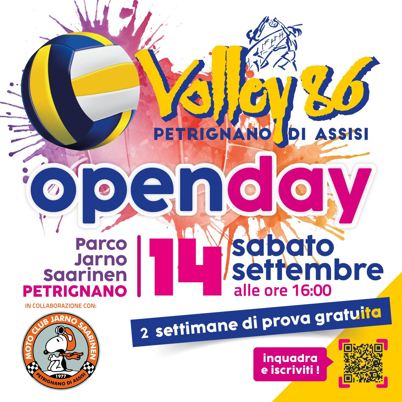 Sta per cominciare una nuova e avvincente stagione per la Volley 86. E in attesa di tornare ad allenarsi nella storica palestra comunale di Petrignano di Assisi – completamente rinnovata con nuovi spazi, nuove attrezzature e nuove prospettive per la società sportiva assisiate – Volley 86 invita i giovani atleti ed atlete all’Open day di sabato 14 settembre che si terrà presso il Parco “Jarno Saarinen” proprio a Petrignano.