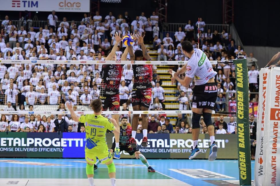 Due set, i primi, di marca Sir Safety Conad Perugia con Atanasijevic e Leon a menare le danze e con De Cecco a distribuire con la consueta qualità ed imprevedibilità. Poi nel terzo parziale la reazione patavina che alza il muro e l’efficienza offensiva. Gli ospiti arrivano fino al 13-18 ma non hanno ancora fatto i conti con l’arma micidiale di Perugia: la battuta. Comincia Atanasijevic (un ace), poi nel turno successivo Leon spara tre fiammate sopra i 130 Km/h e completa la rimonta con il palazzetto che diventa una bolgia.