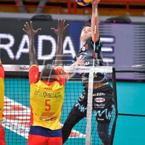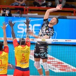 IL MATCH Doppio ace di Leon in avvio di primo set (5-4). Ricci a segno in primo tempo (6-4). Vibo reagisce da par suo con Rossard e Chinenyeze sugli scudi e scappa via (11-15). Ancora ace di Leon (13-15). Muro di Plotnytskyi, ace di Ter Horst e Perugia torna in parità (17-17). Solè chiude un lungo scambio ed i Block Devils mettono la testa avanti (18-17). Altro break per Perugia con Leon (20-18). Fuori Ter Horst e Leon, controsorpasso Vibo (21-22). Leon impatta (22-22). Aboubacar porta i suoi al set point (23-24). Ter Horst manda il set ai vantaggi (24-24). Cester a segno (24-25). Out Aboubacar (25-25). Out anche Victor, stavolta è Perugia al set point (26-25). Lo stesso Victor mette a terra il pallone (26-26). Rossard in contrattacco ed ancora set point Vibo (26-27). Fuori il servizio di Victor (27-27). Ace di Plotnytskyi (28-27). Out l’ucraino (28-28). Chinenyeze (28-29). Fuori Cester (29-29). Rossard (29-30). Leon sulle mani del muro (30-30). Ancora Chinenyeze (30-31). Ricci pareggia nuovamente (31-31). Il solito Chinenyeze (31-32). Attacco out di Aboubacar (32-32). Contrattacco di Plotnytskyi (33-32). Aboubacar non ci sta (33-33). In rete il servizio dell’opposto brasiliano (34-33). Ace di Ter Horst, il primo set è di Perugia (35-33). Spinta dal servizio Perugia parte meglio nel secondo set (9-6). Maniout di Leon (12-8). Mette l’ennesimo ace Leon (14-9). Vibo torna in pista con l’ace di Cester e gli errori di Ter Horst e Solè (17-16). Out Aboubacar, Perugia torna a +3 (20-17). Muro vincente di Ter Horst (22-18). Ace clamoroso di Leon (23-18). Perugia arriva al set point con l’errore al servizio di Chinenyeze (24-20). Chiude subito una magia di Plotnytskyi (25-20). Vibo non molla e parte forte nel terzo set (4-8). Il muro di Plotnytskyi dimezza (6-8). Mette anche l’ace il martello ucraino (8-9). Out Ter Horst, maniout di Rossard e Vibo scappa di nuovo (9-13). Muro di Victor (15-10). Dentro Vernon-Evans per Ter Horst. Altro ace di Plotnytskyi (15-18). Vibo però non trema e con Aboubacar si avvicina al traguardo (17-22). Due ace di Leon ed il contrattacco di Vernon-Evans riaccendono il PalaBarton (21-22). Ancora ace di Leon (22-22). In rete il cubano (22-23). Vernon-Evans al terzo tentativo (23-23). Muro di Plotnytskyi, match point Perugia (24-23). La pipe di Rossard allunga anche il terzo set (24-24). Vernon-Evans (25-24). Plotnytskyi manda in estati il pubblico di casa (26-24).
