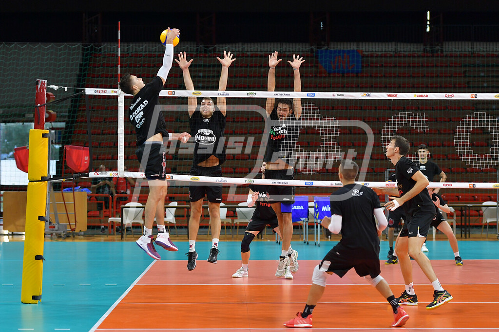 L’aumento del contingente al PalaBarton, considerando che anche Lanza questa settimana riprenderà il lavoro in gruppo, consente però a Carmine Fontana un lavoro già decisamente incentrato sul gioco di squadra, aspetto dove Perugia deve certamente ancora migliorare tantissimo non avendo potuto finora svolgere attività specifica. Proprio in quest’ottica, e naturalmente anche per dare ai giocatori un po’ di ritmo di gioco, saranno due i test amichevoli in questa settimana. Venerdì pomeriggio al PalaBarton allenamento congiunto con la Geovertical Geosat Lagonegro, formazione con ambizioni importanti di serie A2, domenica pomeriggio sfida con la Consar Ravenna, compagine di Superlega, nell’ambito del secondo “Memorial Valter Baldaccini”.