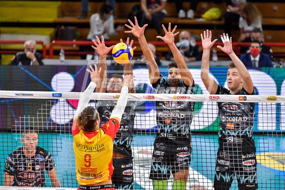 Di fronte a Perugia una rinnovatissima ed ambiziosissima Gas Sales Bluenergy Piacenza. Un mercato estivo importante ha portato alla corte della presidentessa Curti giocatori di grande qualità e dei top player di livello internazionale. Con l’eccezione del libero Scanferla, tutta nuova la formazione tipo, a cominciare dalla diagonale di posto due formata dal cubano Hierrezuelo (mancino di ritorno in Emilia dopo tre stagioni tra Turchia ed Argentina) e dal bomber tedesco Grozer, certamente la punta di diamante della squadra, attaccante di razza potentissimo e con una battuta al salto poderosa alla sua prima stagione nella Superlega Italiana dopo una carriera da giramondo e sei stagioni in Russia. Tutta nuova anche la coppia di centrali con l’ex Trento Candellaro e l’ex Padova Tovo, ottimo muratore il primo ed ottimo attaccante il secondo. In banda altro cavallo di ritorno con Clevenot che rientra al PalaBanca dopo due stagioni a Milano. Accanto al francese l’ex bianconero Russell (in rosa ci sono anche altro due ex Perugia, Fanuli e Shaw), migrato a Piacenza dopo il triennio a Perugia e due stagioni a Trento. A guidare la Gas Sales Bluenergy, subentrato ad Andrea Gardini lo scorso 23 settembre, un altro ex, il tecnico Lorenzo Bernardi. Squadra assolutamente di grande livello Piacenza, molto fisica, molto forte in attacco ed in battuta.