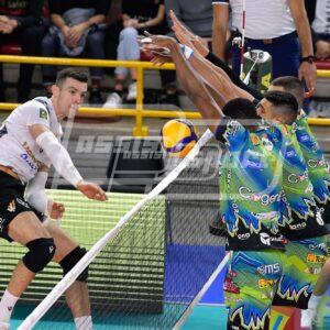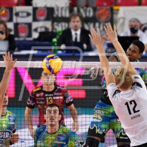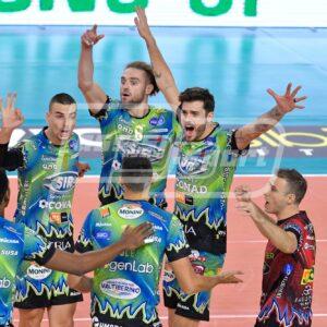 Giannelli (4 punti di cui 2 a muro) si prende l’Mvp, Leon ed Anderson si dividono la palma di migliori realizzatori (19 punti a testa) con il martello americano che incanta la platea veronese con una prestazione magistrale in ogni zona del campo (1 ace, 67% in ricezione, 64% in attacco, 2 muri vincenti). Doppia cifra anche per Solè (10 palloni a terra).