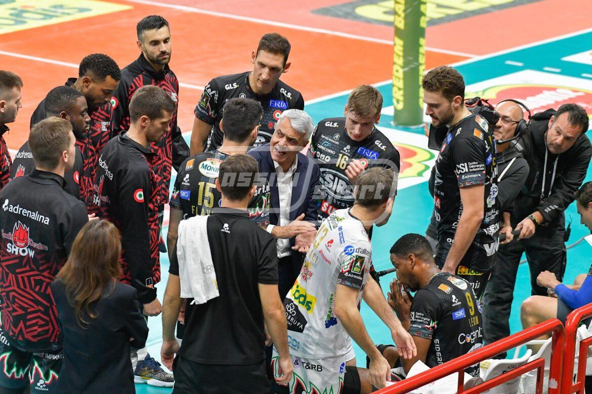 SIR SAFETY SUSA PERUGIA: Giannelli-Rychlicki, Solè-Flavio, Leon-Semeniuk, Colaci libero. All. Anastasi.