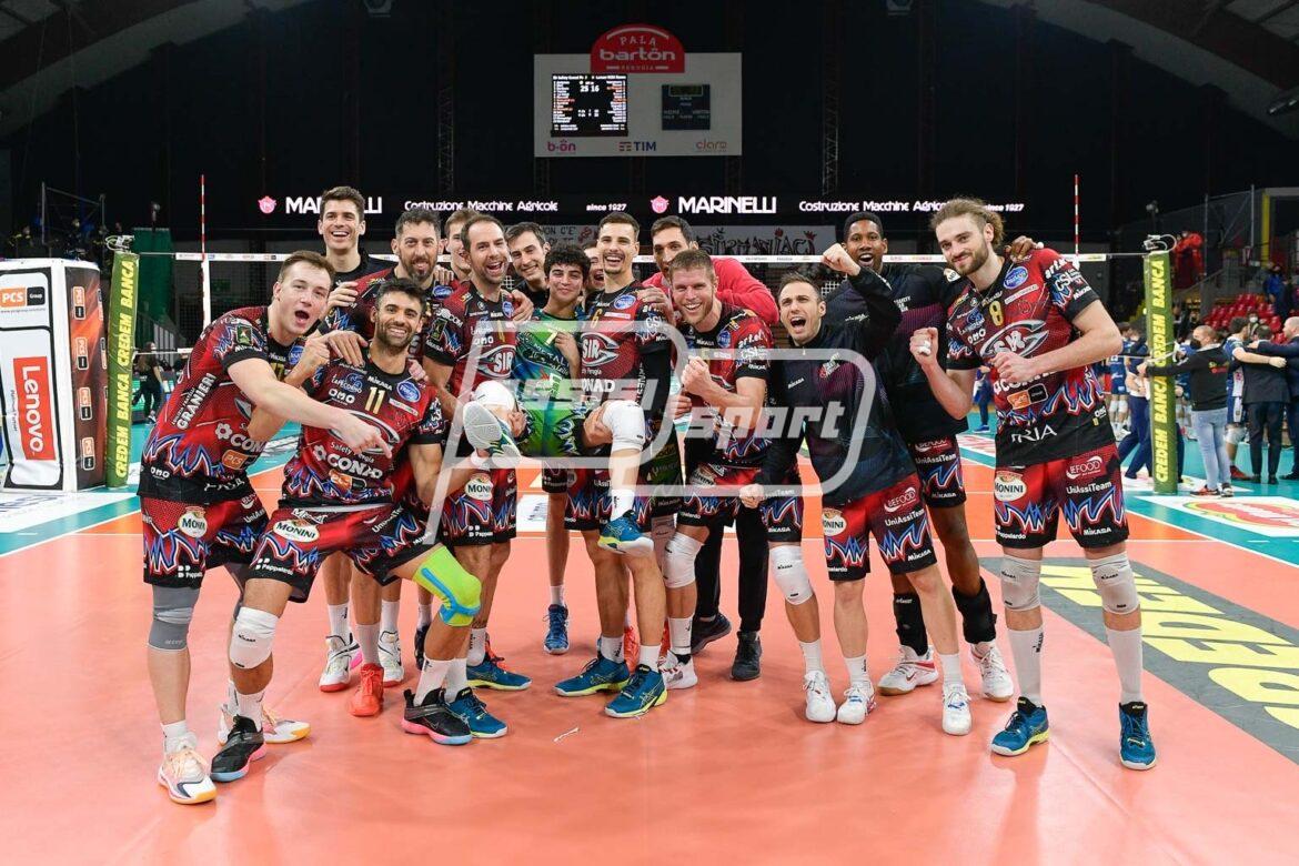 Da sottolineare, accolto dalla standing ovation del PalaBarton, l’esordio in Superlega nel terzo parziale per il libero assisano doc classe 2005 Vittorio Broccatelli, prodotto del vivaio bianconero. Una serata che difficilmente scorderà Vittorio! (Continua dopo la foto)