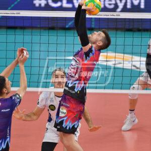 Parte meglio il Tours nel terzo parziale (1-4). L’ace di Plotnytskyi accorcia (3-4), l’errore transalpino pareggia (5-5). Perugia mette la freccia con l’ace di Russo ed il contrattacco di Lanza (8-5). Teryomenko accorcia (8-7). Maniout di Lanza, poi altro punto del martello bianconero dopo un gran servizio di Atanasijevic (11-7). Ace di Trinidad De Haro (11-9). Perugia resta in vantaggio con l’ennesimo maniout di Lanza (17-13). Ace di Tammemaa (17-15). Colpo di Atanasijevic dalla seconda linea (20-17). Plotnytskyi chiude lo smash (22-18). Ancora l’ucraino (23-19). Arriva il match point con Atanasijevic (24-19). Ace di Egleskalns (24-21). Chiude Atanasijevic (25-21).