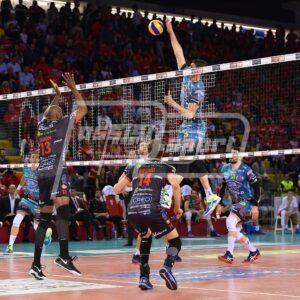 LE CIFRE – CIVITANOVA: 17 b.s., 8 ace, 60% ric. pos., 37% ric. prf., 70% att., 5 muri. PERUGIA: 18 b.s., 2 ace, 37% ric. pos., 19% ric. prf., 58% att., 2 muri.