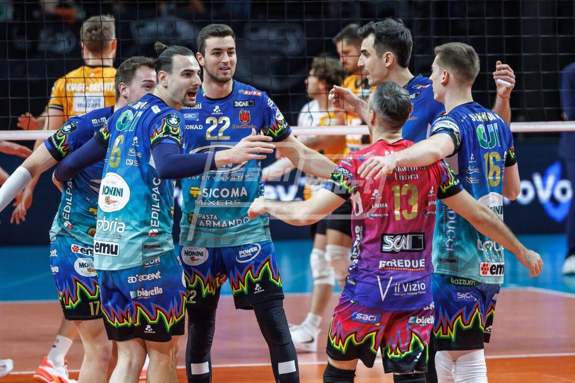 SIR SICOMA MONINI PERUGIA: Giannelli 4, Ben Tara 16, Russo 9, Crosato 5, Plotnytskyi 10, Semeniuk 10, Colaci (libero), Gaggini, Cvanciger 1. N.E: Argilagos. Ishikawa (lib), Solè, Dzavoronok.
