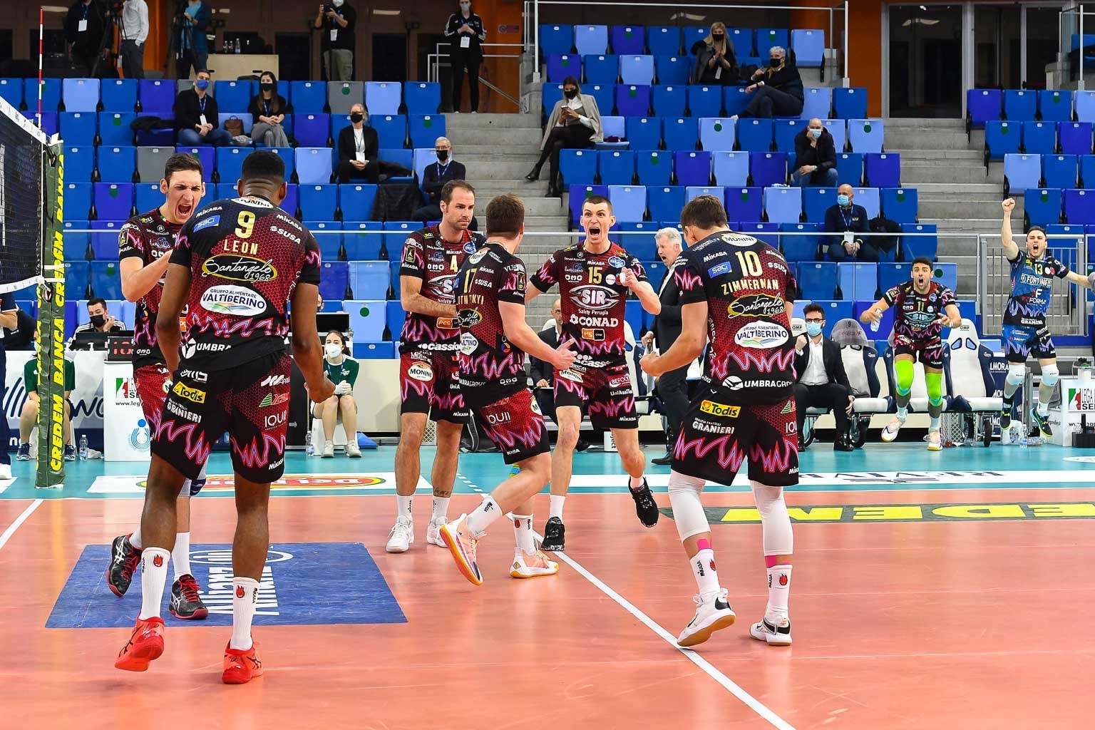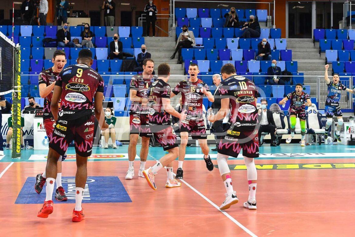 SIR SAFETY CONAD PERUGIA: Travica, Ter Horst 14, Ricci 3, Solè 12, Leon 28, Plotnytskyi 12, Colaci (libero), Zimmermann, Piccinelli, Vernon-Evans 3, Russo 7, Muzaj 2. N.e.: Atanasijevic, Biglino (libero). All. Heynen, vice all Fontana.