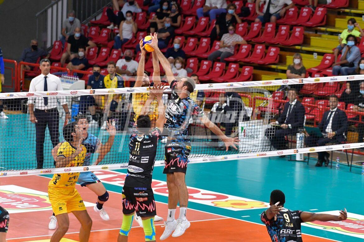 Il tecnico belga sembra orientato a confermare i sette della partita d’andata con Travica in regia in diagonale con il canadese Vernon-Evans, Ricci e Solè coppia di centrali, Leon e Plotnytskyi martelli ricevitori e Colaci libero.