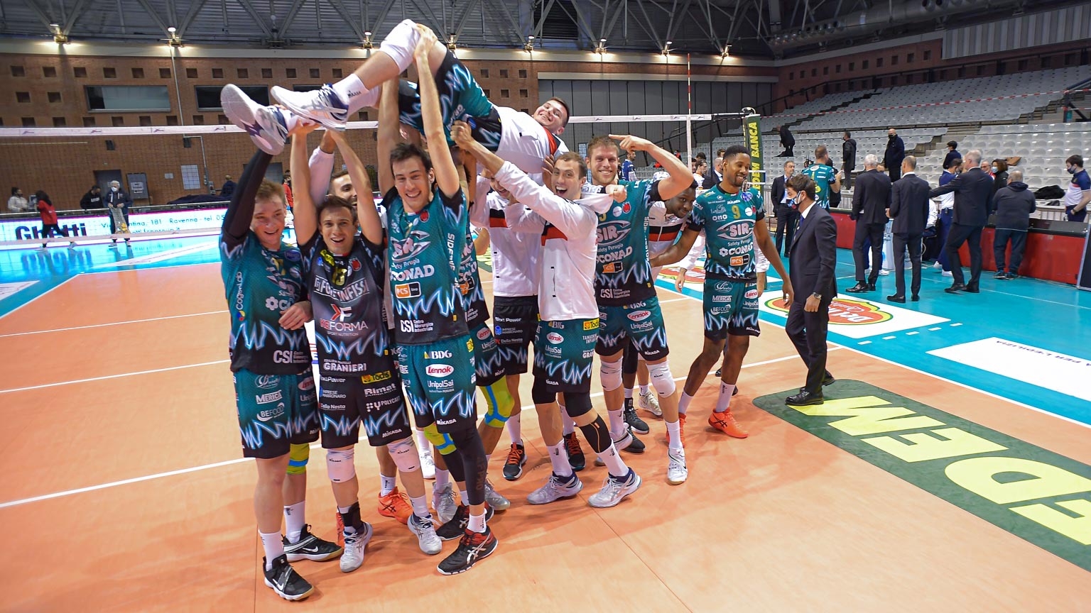 SIR SAFETY CONAD PERUGIA: Travica, Ter Horst 9, Ricci 3, Solè 7, Leon 16, Plotnytskyi 17, Colaci (libero), Piccinelli, Zimmermann, Vernon-Evans. N.e.: Atanasijevic, Russo (libero), Sossenheimer, Biglino. All. Heynen, vice all Fontana.
